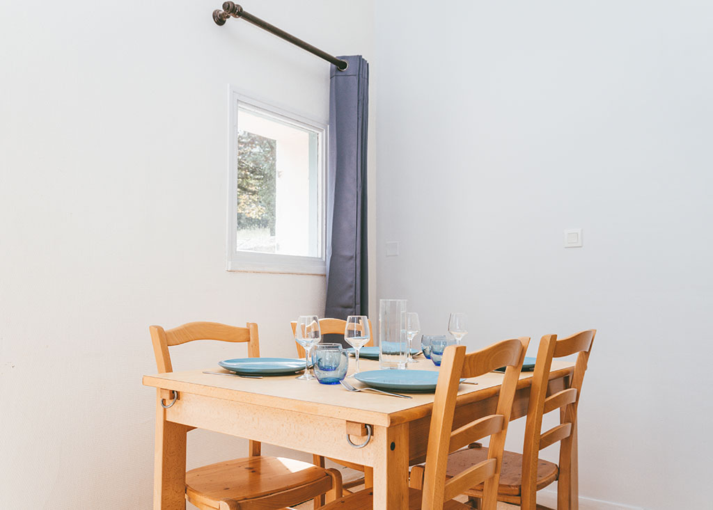 Chaque Maison 2 pièces 4 personnes dispose d’une entrée indépendante, d’un espace nuit, et d’un espace de vie confortable s’ouvrant sur une terrasse privative équipée de mobilier de jardin.