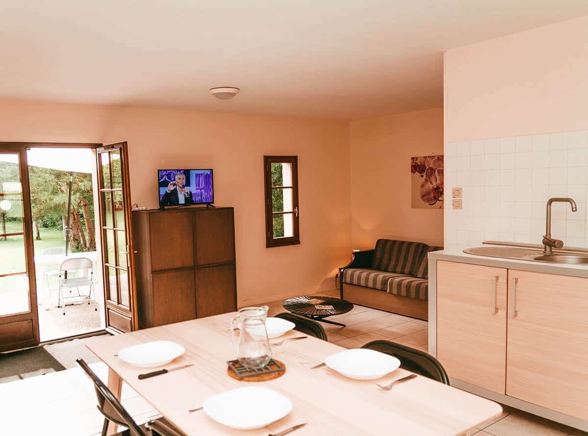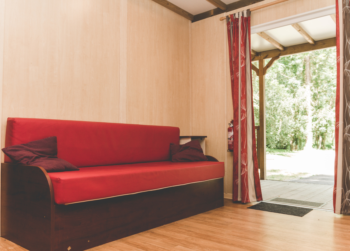 Intégrés parfaitement à l’environnement, nos chalets de 27 m² à ossatures bois et à la décoration soignée, disposent d’un séjour avec kitchenette équipée (4 feux gaz, micro-onde, cafetière électrique, vaisselle et ustensile de cuisine), et table à manger, d’une salle de bain avec douche et toilettes PMR, lavabo, et d’une terrasse avec mobilier de jardins, d’une chambre avec lit double, d’une chambre avec lit simple, et d’un canapé.